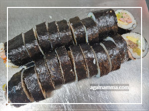 접시에 김밥을 잘 담아주고