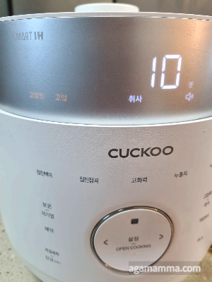 10분이 지나고 전기밥솥을 열자,