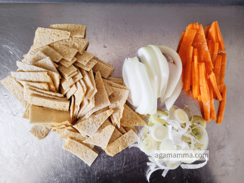 재료 어묵 3장 (약 150g) 양파 반개 당근 대파 올리브오일 2T 진간장 1T 올리고당 1T 참기름 1T 깨 1T 물 3T (1T는 어른 밥숟가락 하나) |
